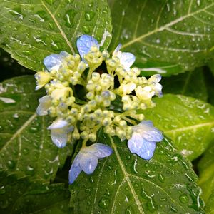 ガクアジサイ わが家のアジサイフェア、2種類目。小ぶりなものから咲き始めるのだと気づきました。