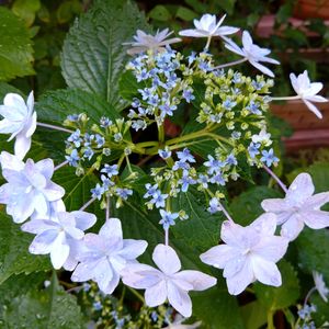 深山オダマキ 葉っぱが水を弾いて清々しい花のよう