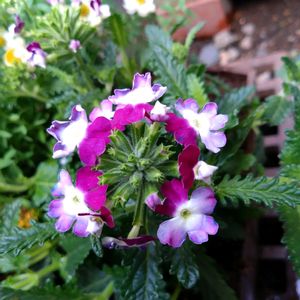 バーベナ 寄せ植えの仕立て直しに一つ植えてみました。和名が美女桜というそうです。