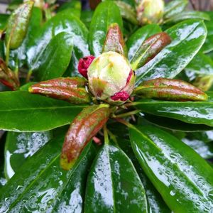 シャクナゲのつぼみ 気温が高いので目覚めたようです。