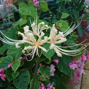 先日お迎えしたクリーム色のリコリス💓 咲いた~🎵 大好きな秋海棠もまだ咲いてくれてる🎵 母が見て「彼岸花は屋敷内に植えちゃダメだよ」わかったますよ😅 家の地方では屋敷内に植えるの忌み嫌われ、切り花を家の中に飾ると火事になるとか言われてます😅 これはリコリスって言っても「いや❗白い彼岸花だ❕ ○○さんの家のそばにいっぱい咲いてる」と😰 確かに白い彼岸花もあるけれど😅 それを言ったらリコリスもネリネナもツズイセンもキツネノカミソリもみんな彼岸花科😅 どこで分けたらいいものやら(〃´o`)=3