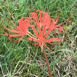 ヒガンバナ。 一本目はちょうど8月17日頃に開花。 そして1ヶ月後二本目が開花。 あと三本植えたのだけど。 どうなりますか☺️