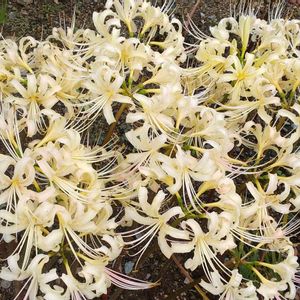 20球が満開になると豪華に見えるわ😆💕 こんなお天気でもここだけ明るく見える😆🎶🎶 台風にはお気を付け下さいね🙇 白曼珠沙華 白彼岸花 リコリスクリーム色