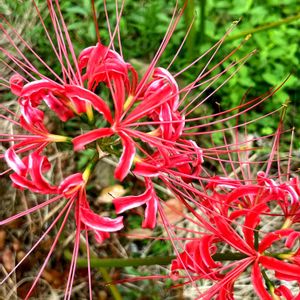 かたかごさん主催の 🏷真っ赤な火曜日 に参加させてください🐸 今朝のお庭❤彼岸花❤ 静岡のお天気🌞外はまるで真夏の肌を刺すような暑さ〰🥵 しかも蝉まで鳴いてる〰💦💦 庭の彼岸花❤台風後に開花してくれました 今年のおばあちゃん✨👵✨はとびきり可愛い赤でした❤ 子供の頃は不吉なお花と怖いイメージでしたが毎年綺麗に咲いてくれる紅白の彼岸花は今は天国にいる祖母の分身のような存在です❤🤍 彼岸花は球根から花芽が出てきてその花が枯れた後に葉が成長しますね 花と葉を一緒に見る事の出来ないとっても不思議なお花です❤ 彼岸花はまたの名を“曼珠沙華”と呼ばれていますがこの名はサンスクリット語で「天界に咲く花❤」という意味なんだとか🙄 ご先祖さまもこんなに真っ赤な風景を眺めているのかしら🤗 日本で一般的に流通している 赤いお花は“リコリス・ラディアータ”と呼ばれる品種だそうです 今日の気分は 【BTS/ツッコミ?】癖強バンタンが面白すぎるw第二弾 You Tubeで検索してみてね🐸 人生には山もあり谷もあるんだよねぇ〰♫ ホント💦実感してる‼️