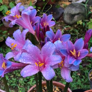 先日もご紹介したリコリス スプレンゲリーが沢山咲きました✨✨ ナツズイセンやブルーパールに似ていますが色合いや花型が微妙に違います😆