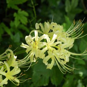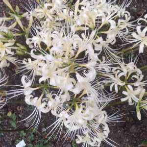 白色リコリス 一つの球根から5つの花が咲いてるよ😆💕💕 どれくらい大きな球根に、なってるんだろう😆🎶🎶