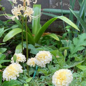 去年は 咲かなかった 母が植えてたクリーム色の 彼岸花(そう呼んでたよ😅) 私の種まき マリーゴールド*バニラと オソロ色でした〜💓 優しい気持ちになれそう✨