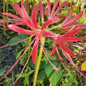 おはようございます(*^▽^*)♪ 最近は風も冷たくなり、秋らしくなってきましたね🍂🍁 彼岸花「もしかしたらリコリス(・_・?)」が咲きました♪ 蕾が沢山出てきていたので満開になるのが楽しみです(*≧∇≦)♪ 以前投稿したリコリスが咲いてからしばらく経ってから咲きました この時間差は何なのでしょうか? 品種が違う「かもしれない」事と関係があるのかもしれませんね! 前回のリコリスよりも赤いので私は彼岸花だと思うのですが、皆さんはどちらだとお考えですか?