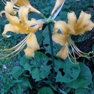 やっと咲いてくれた黄色のリコリス😆💕💕 嬉しくて思わずパチリ 夕方だから見えにくいかな💦💦 とても鮮やかな山吹色してます😆💕💕