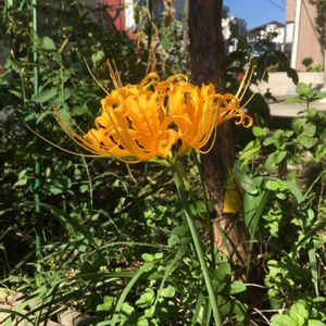 去年植えたリコリスの花が初めて咲きました♪台風の後で良かった!無事に綺麗に咲きました。残念ながら、同じ時期に植えた赤色の曼珠沙華は咲きませんでした。
