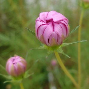 こんばんは🌌😌 又々職場屋上のコスモスたちです🌸🌸🌸背が高くなって⬆️私の背と同じくらい😳🌸 1️⃣コスモスの蕾🩷明日咲くお花🌸😊💕 2️⃣3️⃣4️⃣ビンク🩷濃い色❤️白🤍みんな可愛い😍 5️⃣コスモス🌸🌸🌸越しの屋上の景色☁☁☁曇り空😌