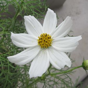春先に道端から苗を持ち帰って育てています 白花が咲きました ベランダで涼やかに咲いています 癒されています