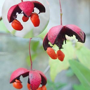 庭の大実ツリバナが、今年も鮮やかな実をつけています。 鳥さんに「ほらほら美味しい実はここだよ~取りに来て~💕」とアピールしてる感じが微笑ましいです😊 ただ毎年のようにカミキリムシの被害にあってて満身創痍😩 希釈したミントオイルスプレーで撃退し続けて、やっと今年は数匹だけになったけど、庭師さんいわく「元々マユミは庭木の中では弱いほう」なんだとか…🤣 なので、今年はこの種を取って育ててみようかなと✨