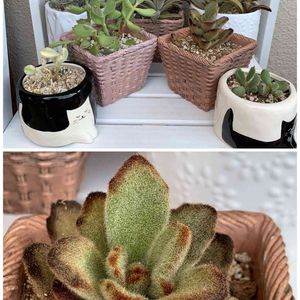 多肉寄せ植えしました。 この鉢 オシャレ。可愛いでしょ🐻💕 姫秀麗とカシミアヒントニーです(*ˊˋ*)