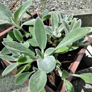 薄紫ビオラ&葉牡丹と寄せ植えて埋もれてたラムズイヤーさん達を救出し別に植え替えました🌿 埋もれてたので、ヒョロっと徒長しちゃってます😥 やっぱお花がないと、寂しいかなぁ(´ε`;)ウーン…