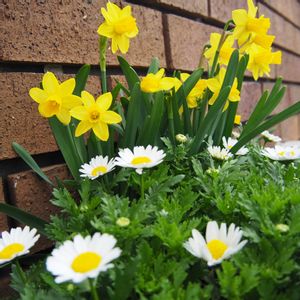 こんにちは〜♪ 今庭から❀︎✿︎ ① ミニスイセンとノースポール スイセンはいいね〜 毎年咲いてくれる😃 ② アネモネ ポルト💜 2年目 ひと回り小さなお花で咲きました♪ ③ ④ パンビオ 花手水❀︎✿︎ 真ん中の 絵になるスミレパルムの大きな花 パンビオも大きさがそれぞれ💕 ⑤ ムスカリも やっとお目覚めです♪ 今日も暖かく花粉がいっぱい😓 鼻グズグズが止まりません…