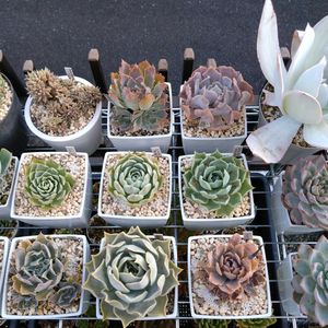 こんばんは😄 今日も朝から暑かったですね🥵 うちの子達、何とかこの残暑を乗りきってくれると良いんですけど🥲 今日は暑かったけど頑張って大き目の親株達の手入れをしました。 写真の子達は春に植え替えたから秋は植え替えしない予定です😊 枯れ葉取って表面の苔で汚くなった土をホジホジして😅 土を足してオルトラン追加。 咲くの待ってられないからクライギアナの花芽カットしちゃいました😂 ここだけしかお手入れできませんでしたが植え替えしたみたいにスッキリ✨ またブロワーしたら土飛びまくるけど🤣 棚から作業場まで重い鉢を移動させてのお手入れ汗が止まらず大変でした🥵 移動中、庭石に脹ら脛の横が触れてしまってめちゃくちゃ熱かった😱 火傷しそうなくらいの熱さ💦 この熱さにうちの地植え多肉達は頑張って耐えてるんだね😂 殆ど腐ったけども😅 腐らず耐えてる子達偉いぞ!🤣 後少し頑張れ🙌
