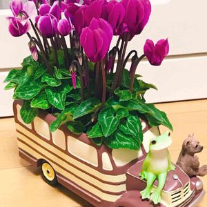 シクラメン すっごく綺麗だったので✨お気に入りのプランターに飾ってみた😊 う〜〜ん😊華やかで良いー👏✨