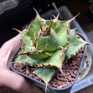 鋸歯が面白い形になるアガベ オテロイ実生。