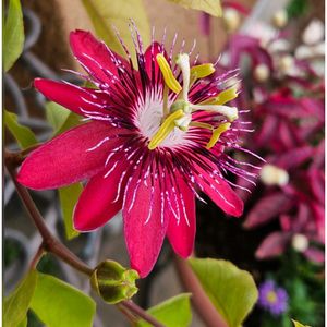 ①金曜日に蕾でポストしたトケイソウが咲きました✨ ②トケイソウのアップ❤️ ③🏷️今日のお花 え〰️右上↗️に見えますのは採れたてサツマイモでございます❣️ ④ドーン!とサツマイモ 大収穫です ⑤紫芋なんです💜 先日掘って(夫が)しばらく干しておいた紫芋をオーブンで焼き芋に😋 鮮やかな紫色です💜 すっきりした甘味 アントシアニンがたっぷりかな♪