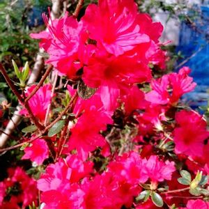 おはようございます。😃😃😃 4月29日の投稿でつぼみだった赤いツツジがこの暖かいGWの気候で満開を迎えました。 この後時間差でピンクの縁取りと最後に白いツツジが毎年順番に咲いていき庭を華やかにしてくれます。 🌿💐🌸🌱🌼🎶🏵️🌿💐🌸🌱🌼🎶🏵️🌿