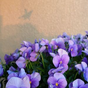 こんばんは😊 ビオラ 日が長くなりました🌅 日が傾いた時間、モリモリに咲いているビオラさんの向こうの壁に何やら影が… ①②モリモリビオラと何やら影…😊 ③④大好きな色😍😍 ⑤影はこの子🐦️ ウィンドスピナーの可愛い鳥です😆 風が吹くとめっちゃお仕事してます🌀🐦️