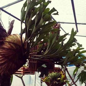 うっひゃーな強光🤩&強風💨 その割には春から慣らしがうまく行ったのか、我が家のチームプラミィーズは絶好調です。(๑˃̵ᴗ˂̵)9 よっしゃ💕 胞子葉も貯水葉も、硬めで色も濃くて パリッとして来ました。 夕方には水苔もベラボンもカリカリ 夜ににジョウロでダバダバ給水 このパターンでみんな貯水葉バサバサ 行きましょー❣️ このベランダフックシステムは緊急時は このまま下に下げて日陰&対風モードになります。😎クリスペプラーの声で読んでね