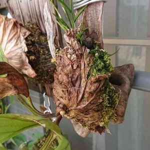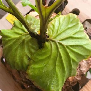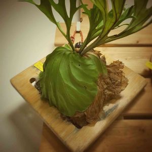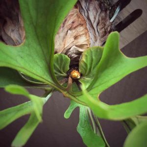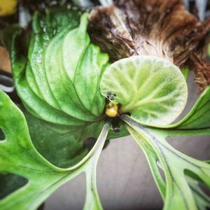右下の大きな葉は昨年のもの 真ん中から左の3枚は今年に入ってからの新葉です よく見ると新しい貯水葉が出てきました。 (๑˃̵ᴗ˂̵)🍀うひゃー 違う、コイツは胞子葉だ