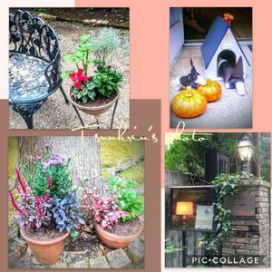 北鎌倉 葉祥明美術館 なんだか、 ほっこりする お出迎えの アプローチ かぼちゃ🎃の前で 恥ずかしそうに かくれている子は、 だあれ?