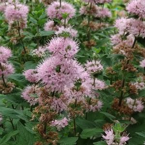 カリオプテリス パビリオンは花式部とも呼ばれ ダンギク(段菊)の近縁種です。 小さな集合花を下から上に段々と付ける花姿はとても可愛いです。 花色はピンクのほか白と紫色があります。 耐暑性はありますが 耐寒性は余りなく 地上部は 冬枯れしますが 暖かい地域では翌春 また 株元から芽を出し花を楽しめます。 日本・朝鮮半島・中国東部・台湾原産 シソ科ダンギク属の多年草。