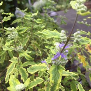 10数年名前がわからないまま育ててきたこの花の名前がやっと、やっと判明しました。 「カリオプテリス スターリングシルバー」、 クマツヅラ科の宿根草、 別名「ダンギク」「ハナシキブ(花式部)」 「カリオプテリス」といってもいくつか種類があって、葉の色・形、花の付き方、色など微妙な違いがあります。 いろんなサイトの画像を見比べた結果、ほぼ「カリオプテリス スターリングシルバー」で間違いなさそうです。 GreenSnapがなかったらここまでには辿り着けなかったと思います。ありがとうございます。 とても丈夫で可憐で上品なお花です。 これからも大事に育てていきます。