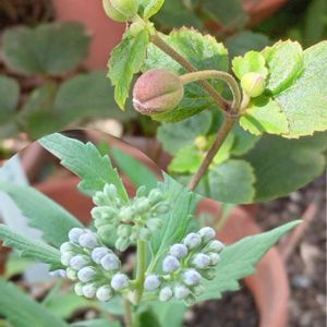 秋明菊🌿💞 やっと蕾が分かる位に成長しました💞 カリオプテリス🌿💙 初めて育てるので🌿どんな花が咲くのか楽しみです🎶 🏷金曜日の蕾たち🙇♀️