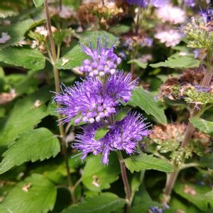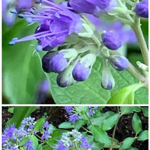おはようございます🌞 今年のカリオプテリスです❣️ 豪雪でボキボキ折れましたが、なんとか新枝に花を咲かせてくれました。 下にチラ見で見えるエルダーフラワーも 悲惨な姿でしたが、復活の兆し❣️ 先ほどカリオプテリスの表示を間違えていた事に気づき修正しています。 名前うろ覚えは危険だわー💦