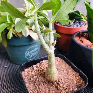 冬越し失敗して駄目にしてしまった😢アデニウム・オベスムの後継者です✋お気に入りのメタリック鉢に植えて見ました✨まだ新芽でちっちゃくて可愛いです😊どんどん丈夫に大きくなってくれると良いな🙏
