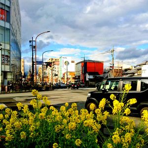 季節を超えて いま見たいものを 取り出してくる この黄色 背景の空と雲が 引き出しているように 思えてならない 四条西院 20190220