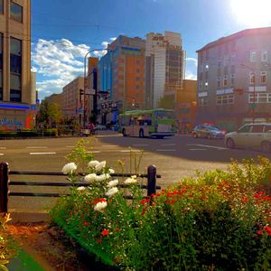 交差点ごとに趣がかわる これも昨日の四条の街角 地域の方々の愛と誇りを 植物たちも、光をうけて 少し誇らしげにも見えた 20191111