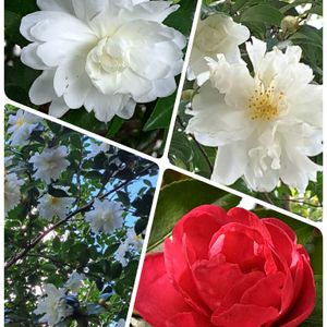 自宅近くのサザンカロードのサザンカさん🎵が咲いてきました~✨💕😍 白いのが先に咲いて…赤いのがやっと咲いてきました🎶😊