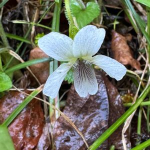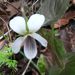 高尾山に小さいニョイスミレ(ツボスミレ)の花が沢山咲いて可愛いです♡🌿 山地の林の湿った所に生える多年草です。 花の直径は8mm位で日本で見られるスミレの中では1番小さいスミレです。 花弁に濃紫色の筋が目立ちます。 距は短く球形に近く、托葉に切れ込みが無いのが特徴です。 スミレ科スミレ属
