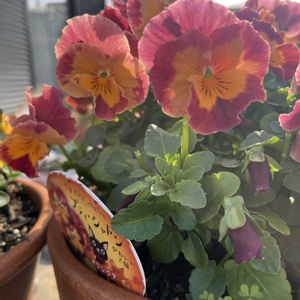今年のパンジービオラ4️⃣ ①ビオレッタ グレイッシュオレンジモンキーズ🐒 ②黒いビオラ ③タイガーアイ ④恋もも ⑤不明
