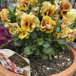 今年のパンジービオラ2️⃣ ①とき乙女 ②シエルブリエ ③名前不明 ④ペルクレア ⑤キューティーアプリコット