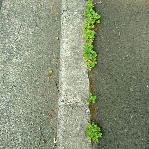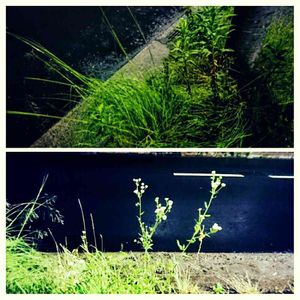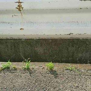 鉄 石 緑、ぽつんと花 九条通り 京都市 20170714