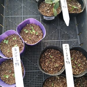 メラミンスポンジがダメということで、ケールの種も届いたし仕切り直し。 左上から えごま 辛い唐辛子 韓国ケール 真ん中 サラダミックス サラダ春菊 シソ 右上 サラダミックス サンチュ サンチュ ケール種、なんか色が可愛いって思ってたけど、単純に着色してあっただけかも。水つけたら色落ちしたので😅 育つのが楽しみー♡