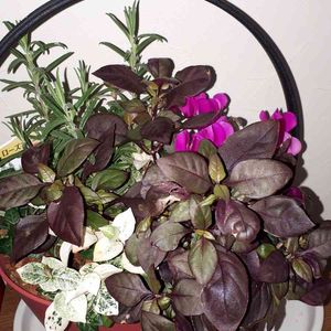 頂き物の寄せ植え*:・'°☆ ローズマリー・ハツユキカズラ・ガーデンシクラメン 手前の子の名前を分かる方がいたら、教えて下さい!!