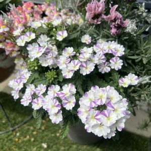 宿根バーベナ はなあかり 白い花びらに紫色のラインが入るとても綺麗なバーベナです☺️