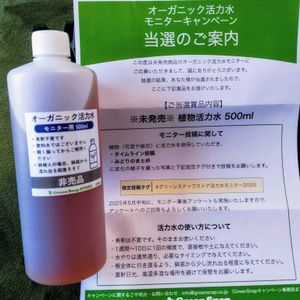 オーガニック活力水 モニターキャンペーンに選んでいただきました😆️ 希釈不要でそのまま使うようです。 さっそく2年前に頂いた、土を使わないテーブルプランツの「ミニガーベラ」に与えました。