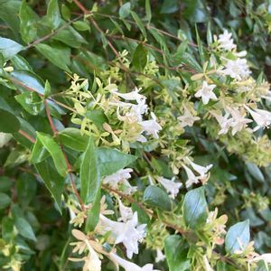 ①② アベリア愛らしいお花ですネー ③ 白い百日草 ④ 寄せ植えのミニバラ