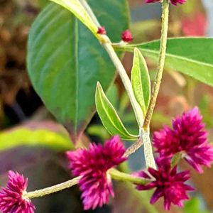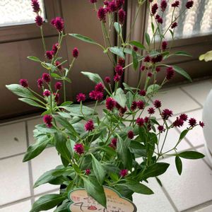 こんにちわ。◕‿◕。 今日も良いお天気です☀ 友達から小さな苗を貰って育ててた千日小坊がやっとお花を咲かせてくれました❤️ 千日紅をはるかに、小さくしたお花で赤紫色で可愛い🥰 花期が長く冬の間楽しめるそうです ( ◜‿◝ )♡