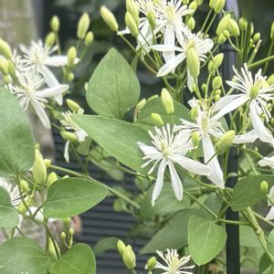 冬咲きクレマチス 〜冬色のメロディ〜 本名:アンスンエンシス 蕾が何十個も付いています 開花が楽しみ❤︎ 本日も晴天で暖かい…! 朝からトレーナーだけで庭を ウロウロ♪♪ クリスマスイブ以降 大阪に数日滞在 昨夜帰宅しましたが… 帰りに性懲りも無く大阪(茨木市)に有る大好きな園芸店に かなり遠回りして寄ってしまいました! そこで4つ連れて帰って来ちゃった 1つ目です。以前より気になっていたクレマチスです…❤︎ pic 4枚目 後ろから見ても可愛いので 置き場所を塀の上に変えました^ ^
