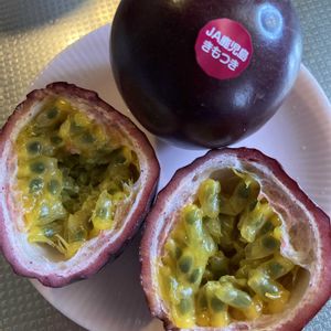 パッションフルーツ 頂きました😃 初めて食べたけど 知ってる香り。 プチプチ美味しい♥️ ヨーグルトに入れて 食べる(。・ρ・)