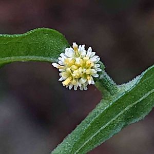 シュウブンソウ(秋分草) キク科 秋分の日頃に花が咲くので、名がついたとか。 目立たない花で、ヤブタバコに似ているが、ヤブタバコとは違って頭花が舌状花になっている。
